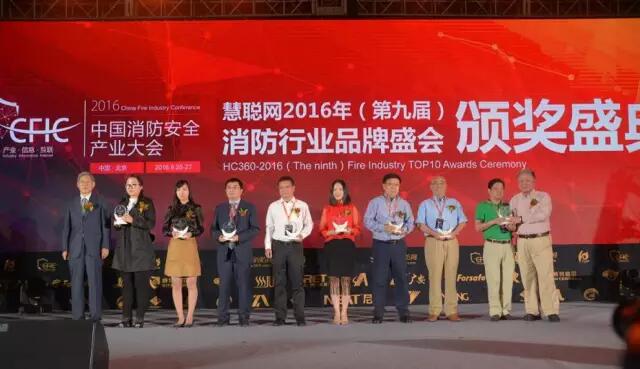 2016年9月26日-27日,以“產業、信息、互聯”為主題的CFIC2016中國消防安全產業大會暨(第九屆)消防行業品牌盛會頒獎盛典在北京九華山莊隆重舉行。大會吸引了來自行業各界的專家、學者、生產企業、工程商、用戶等近千名代表出席。同時,被譽為行業奧斯卡的“2016年(第九屆)消防行業品牌盛會”也隨之隆重揭曉。