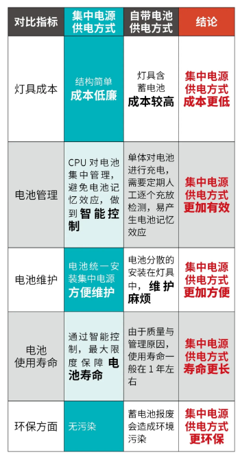 一般項目中,疏散燈具的數量較多。疏散燈具的蓄電池供電方式有集中電源供電方式和燈具自帶蓄電池工作方式兩種,成本對比如圖: